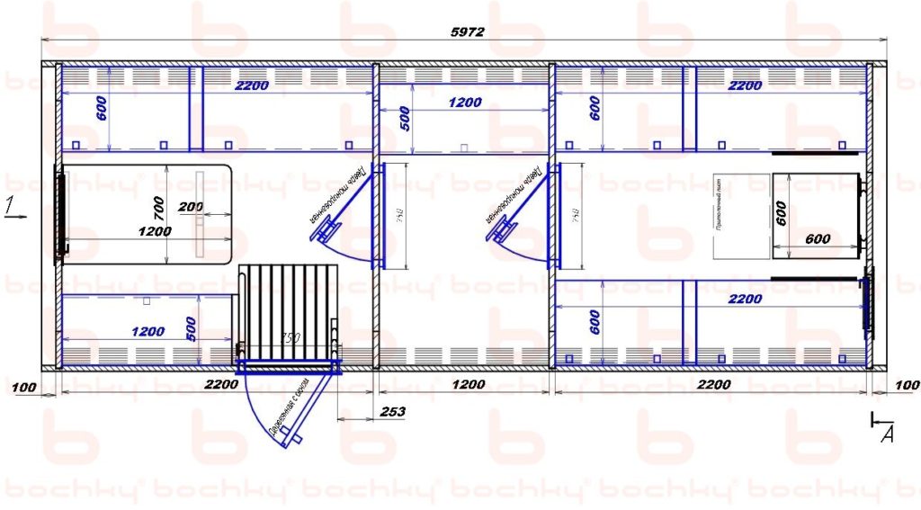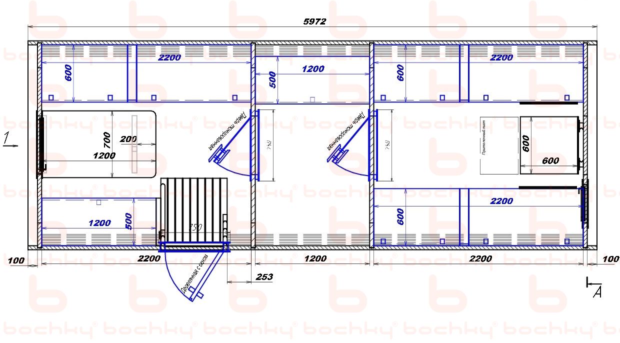 | Длина раздевалки (внутренний размер) | 2200 мм |
