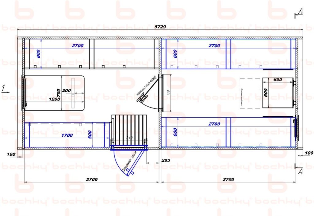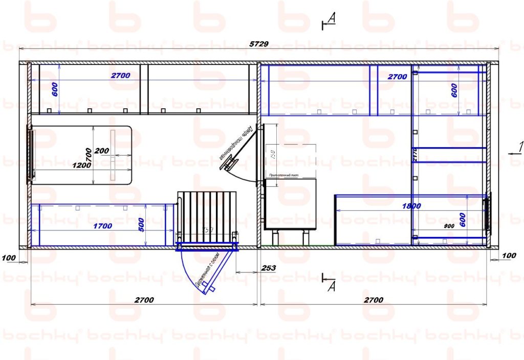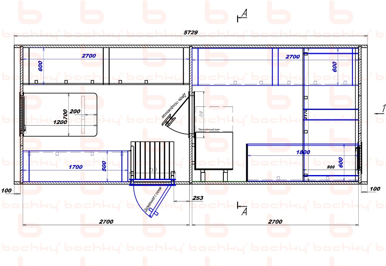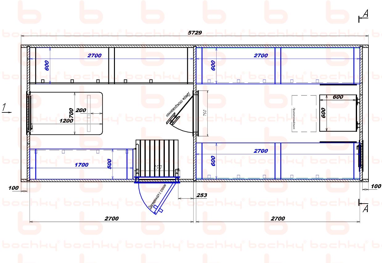 | Длина раздевалки (внутренний размер) | 2700 мм |