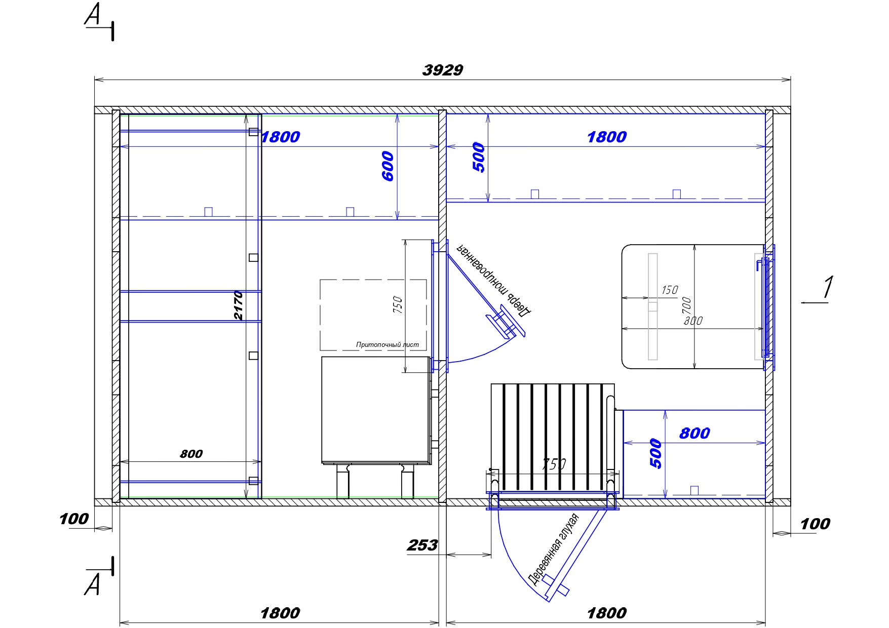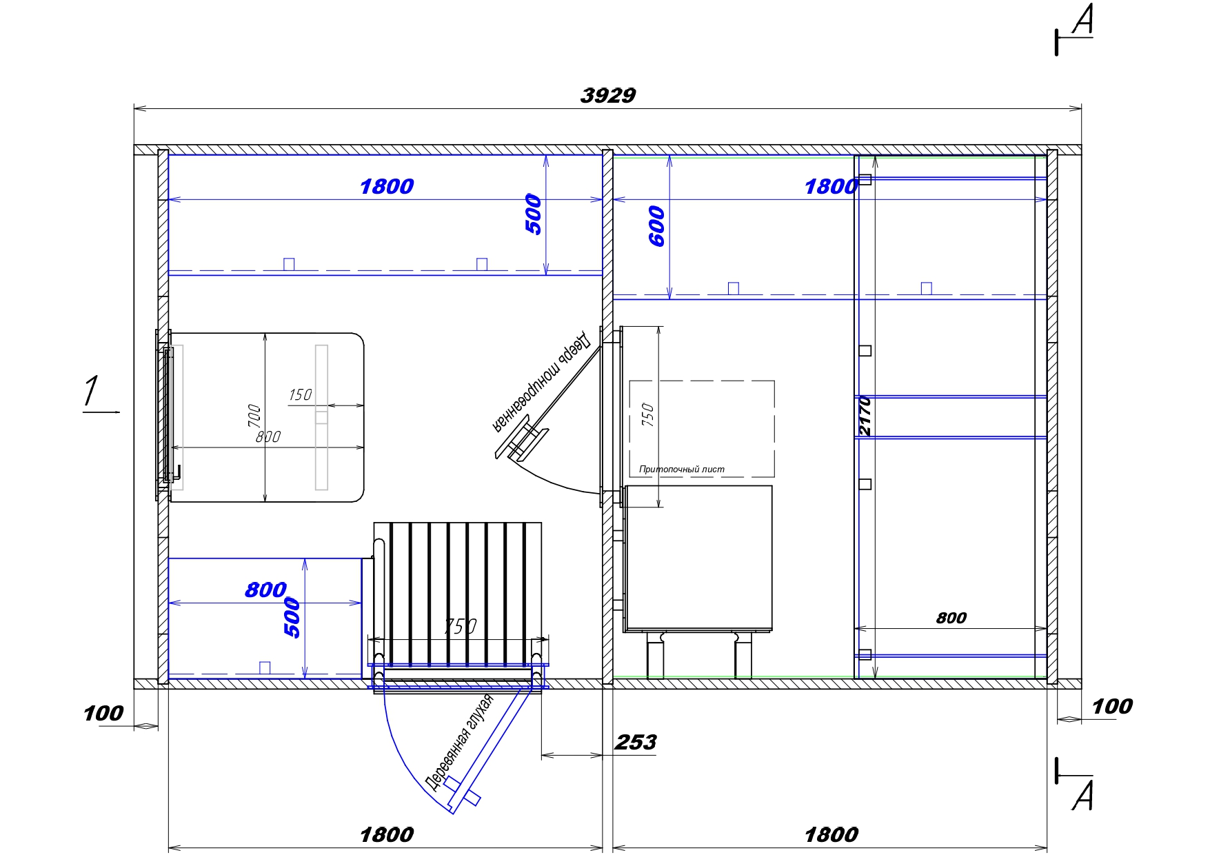 | Длина раздевалки (внутренний размер) | 1800 мм |