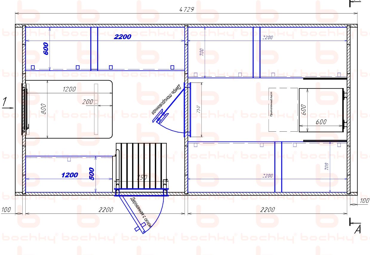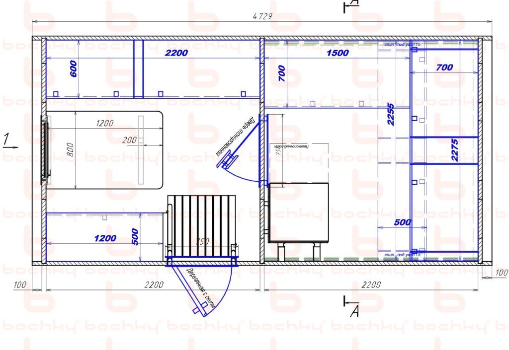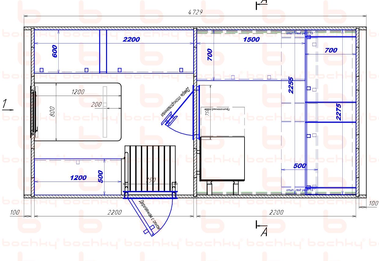 | Длина раздевалки (внутренний размер) | 2200 мм |