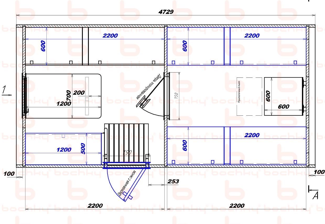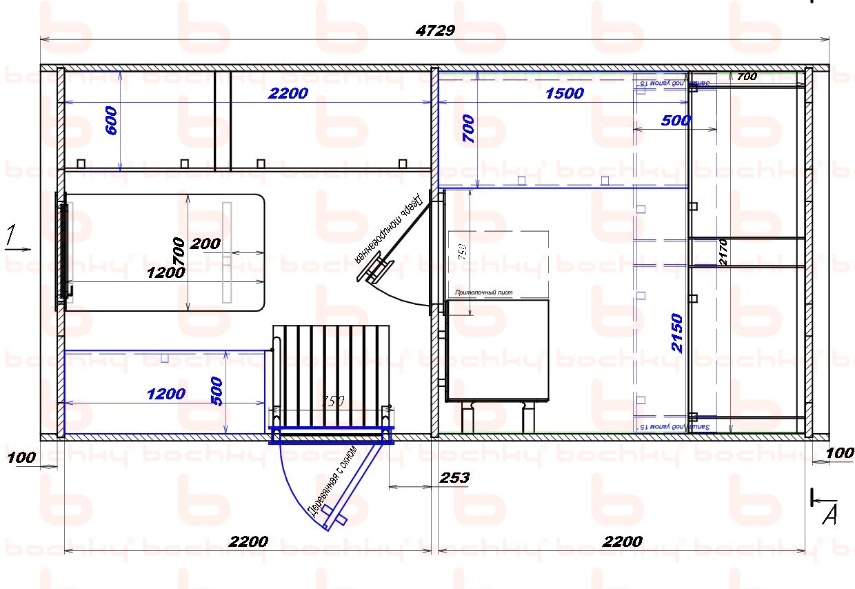 | Длина раздевалки (внутренний размер) | 2200 мм |