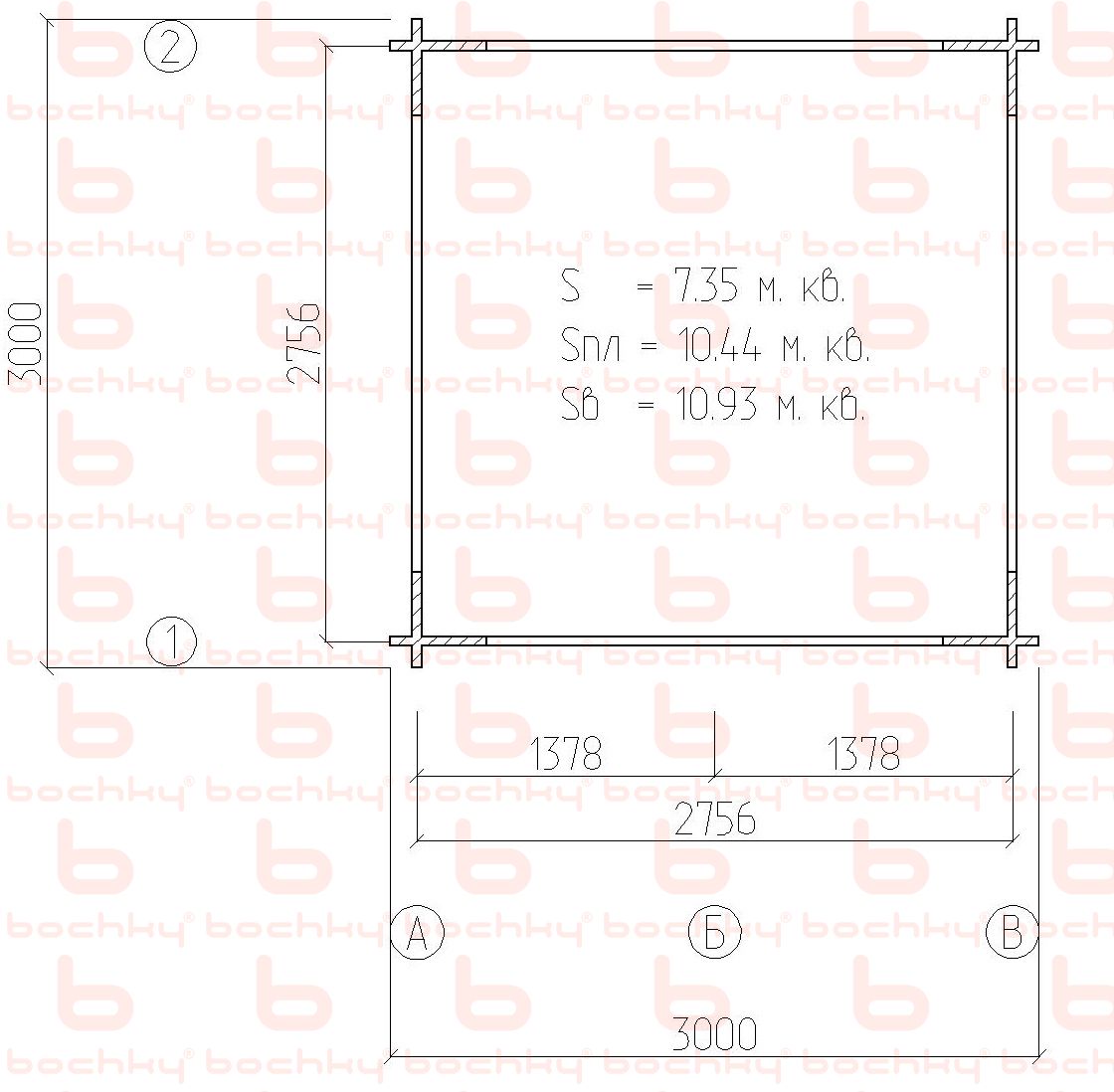 | Внешние размеры (без свесов крыши) | 3000*3000 мм |