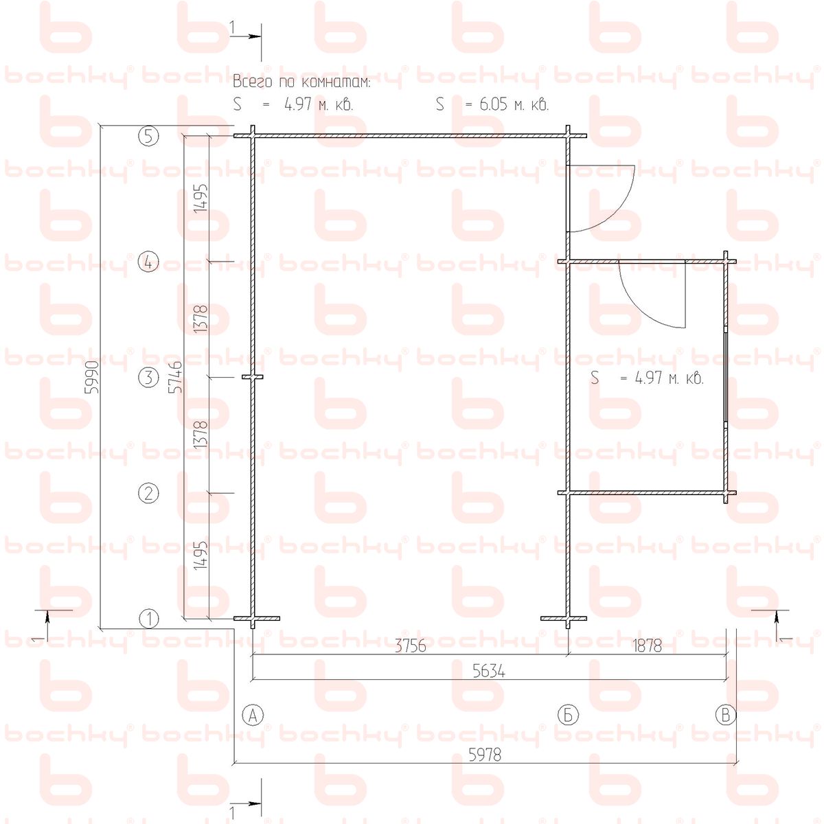 Наружные стены (16 венцов — высота стены 2,2 м), фронтоны и перегородки Профилированный строганный мини-брус камерной сушки сечением 44х143 мм, влажность 10-12%